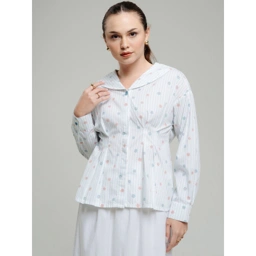 Blouse berwarna Biru dengan motif garis vertikal dan titik warna-warni yang memberikan nuansa ceria namun tetap lembut. Lengan panjang dengan detail sederhana membuatnya nyaman dipakai dan mudah dipadukan. Terbuat dari bahan yang ringan dan breathable, blouse ini cocok untuk tampilan kasual maupun semi-formal yang tetap stylish dan effortless.