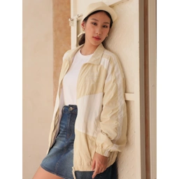 Jaket bernuansa beige dengan desain color block yang kasual dan stylish. Dilengkapi resleting depan, kerah tinggi, serta karet pada pergelangan dan hem untuk tampilan sporty. Terbuat dari material ringan yang nyaman, cocok dipakai untuk aktivitas santai maupun hangout.