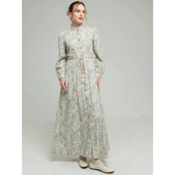Dress panjang bermotif floral kecil ini menghadirkan pesona feminin yang lembut dan manis. Didesain dengan kerah lebar bergaya Peter Pan berhiaskan renda tipis yang memberikan nuansa vintage yang anggun. Detail kancing depan penuh dan tali serut di pinggang memudahkan pemakaian sekaligus membentuk siluet tubuh yang lebih proporsional.