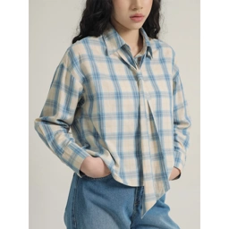 Kemeja plaid dengan sentuhan tie detail yang bikin look kamu lebih standout tapi tetap santai. Warna soft-nya kasih vibe clean & effortless.